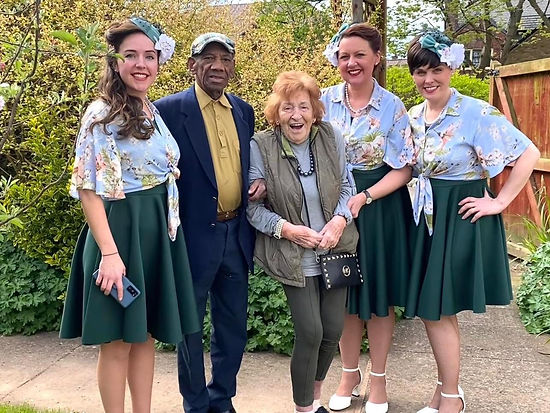 The home’s team arranged a romantic three-course meal in a private dining room along with two of their friends. Later, everyone enjoyed a performance by the Boogaloo Babes, a vintage singing group, who played music from the era when Mary and Jake first met.